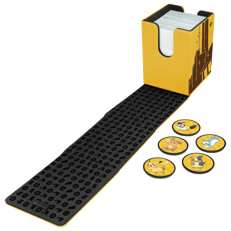 Featuring an electrifying array of Electric-Type Pokémon, these accessories are a powerful addition for electric enthusiasts of all kinds. Show off your shocking style with a Playmat, Full View Deck Box®, and Pocket Portfolio. Or, crank up the voltage with an Alcove Click Deck Box, with swappable magnetic badges featuring Pawmot, Pikachu, Morpeko, Emolga, and Pachirisu!