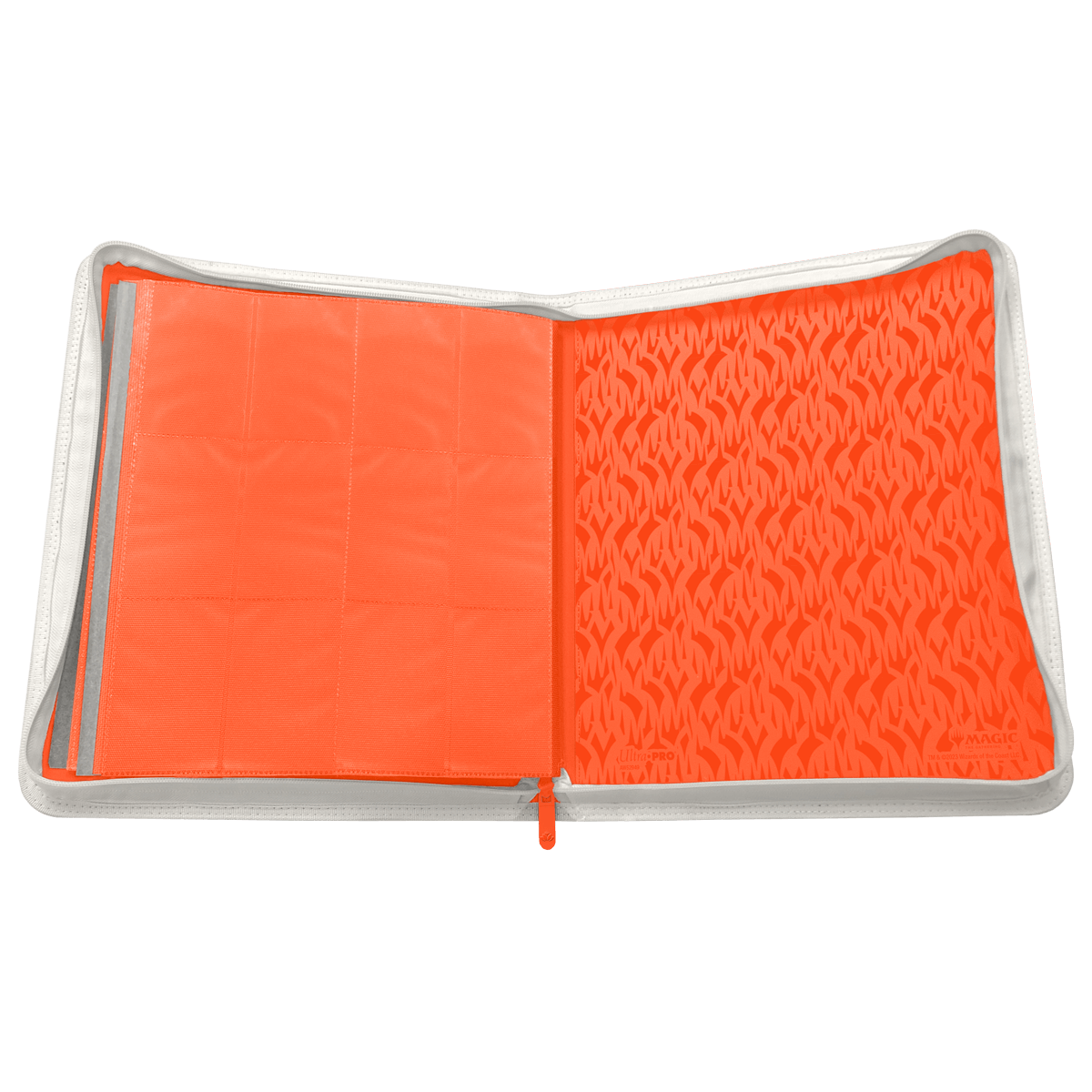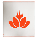 The Mana 8 12-Pocket Zippered PRO-Binder is designed for collecting and organizing your favorite trading cards. Each binder features a padded white leatherette cover with the iconic Lotus symbol debossed onto the front, with contrasting orange stitching and a zippered closure. After unzipping the binder, you'll find a orange patterned interior and twenty matching 12-pocket pages, which allow you to store up to 480 standard size cards in Deck Protector® sleeves in the side-loading pockets. Every PRO-Binder is made with acid-free, non-PVC materials to ensure your cards are protected and preserved.