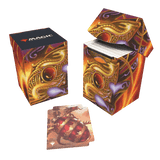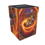 The 100+ Deck Box® card storage container features vibrant, full-color artwork from Magic: The Gathering and includes a deck divider. Made with archival-safe, non-PVC, rigid polypropylene materials, you can store up to 100 double-sleeved cards with confidence. The self-locking lid keeps your cards securely stored when not in use, while also offering easy access. Sized for standard size trading cards.