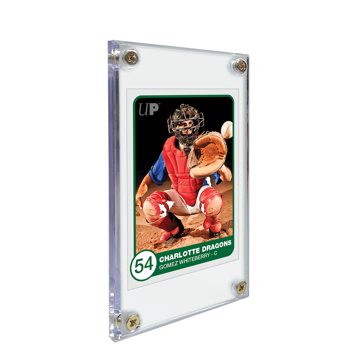 1/4" thick screw down holder for 2-1/2" x 3-1/2" (63.5mm x 88.9mm) standard sized cards. Designed with two-piece ultra clear material and four-screw closure with one screw at each corner. Acid-free and no PVC. (Card not included)