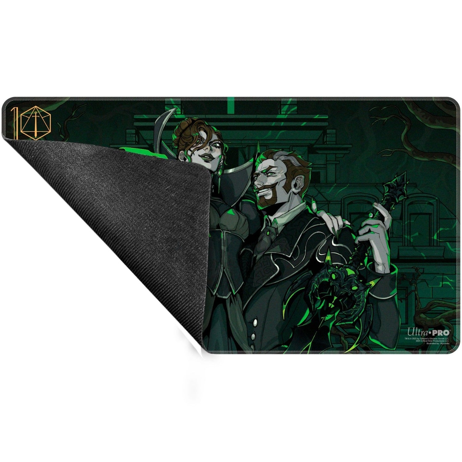The 10-Year Anniversary of Critical Role continues, and it is the baddies’ turn in the spotlight! This exclusive playmat features high-quality artwork of the Briarwoods by Myrmidia, making it a great collector’s piece for every Critter. Made with a soft fabric top and non-slip rubber backing, playmats provide a safe gameplay surface for your specialty dice, miniatures, and cards. With dimensions of approximately 24 in. x 13.5 in., a playmat also makes an excellent oversize mousepad for home or office.
