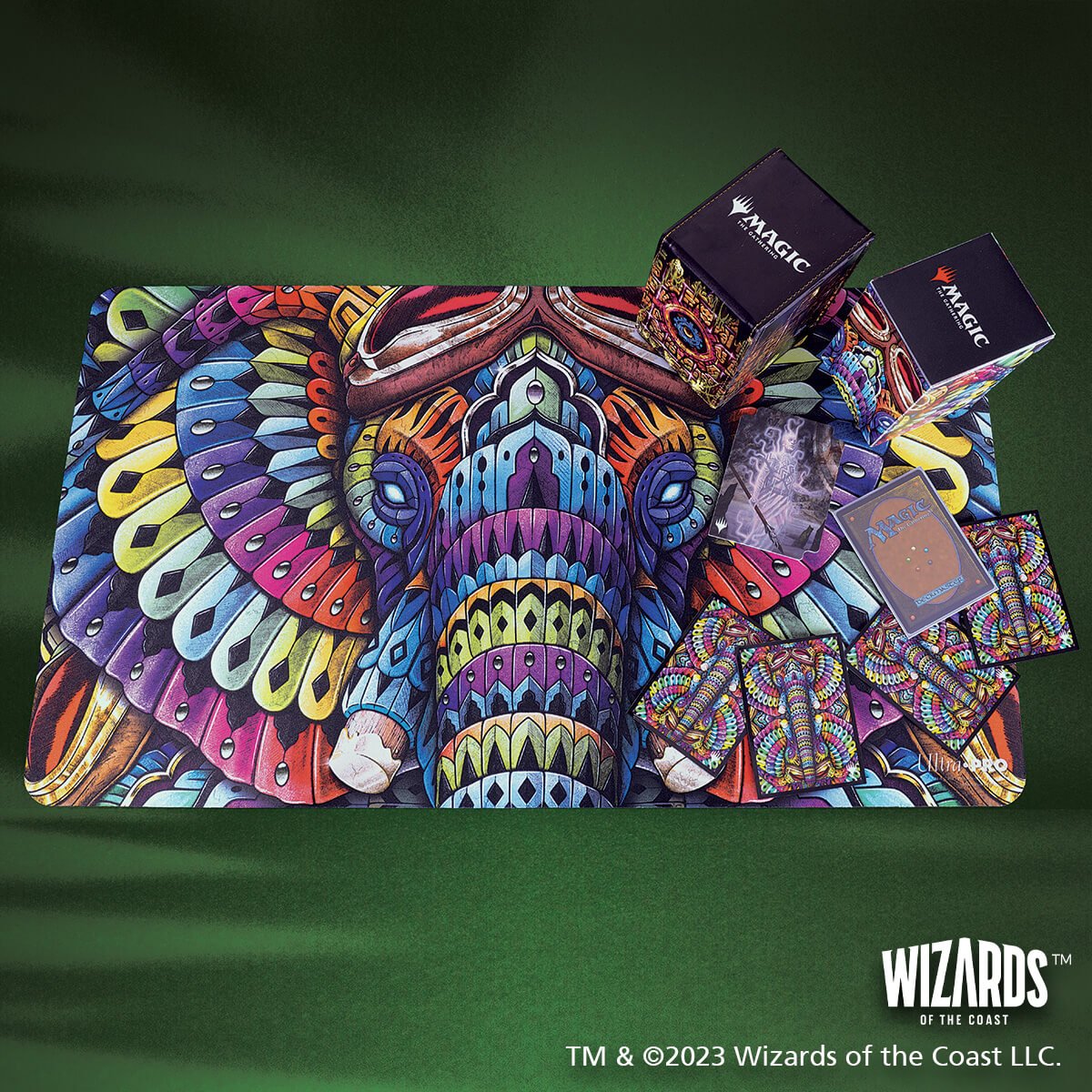 Playmats feature popular Magic: The Gathering artwork. Made with a soft fabric top to reduce damage to cards during play and a non-slip rubber backing to keep the playmat from shifting during use, playmats enhance the gameplay experience. With dimensions of approximately 24 in. x 13.5 in., a playmat also makes an excellent oversize mousepad for home or office.