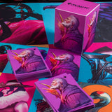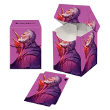 The 100+ Deck Box® card storage container features vibrant, full-color artwork from Magic: The Gathering and includes a deck divider. Made with archival-safe, non-PVC, rigid polypropylene materials, you can store up to 100 double-sleeved cards with confidence. The self-locking lid keeps your cards securely stored when not in use, while also offering easy access. Sized for standard-size trading cards.