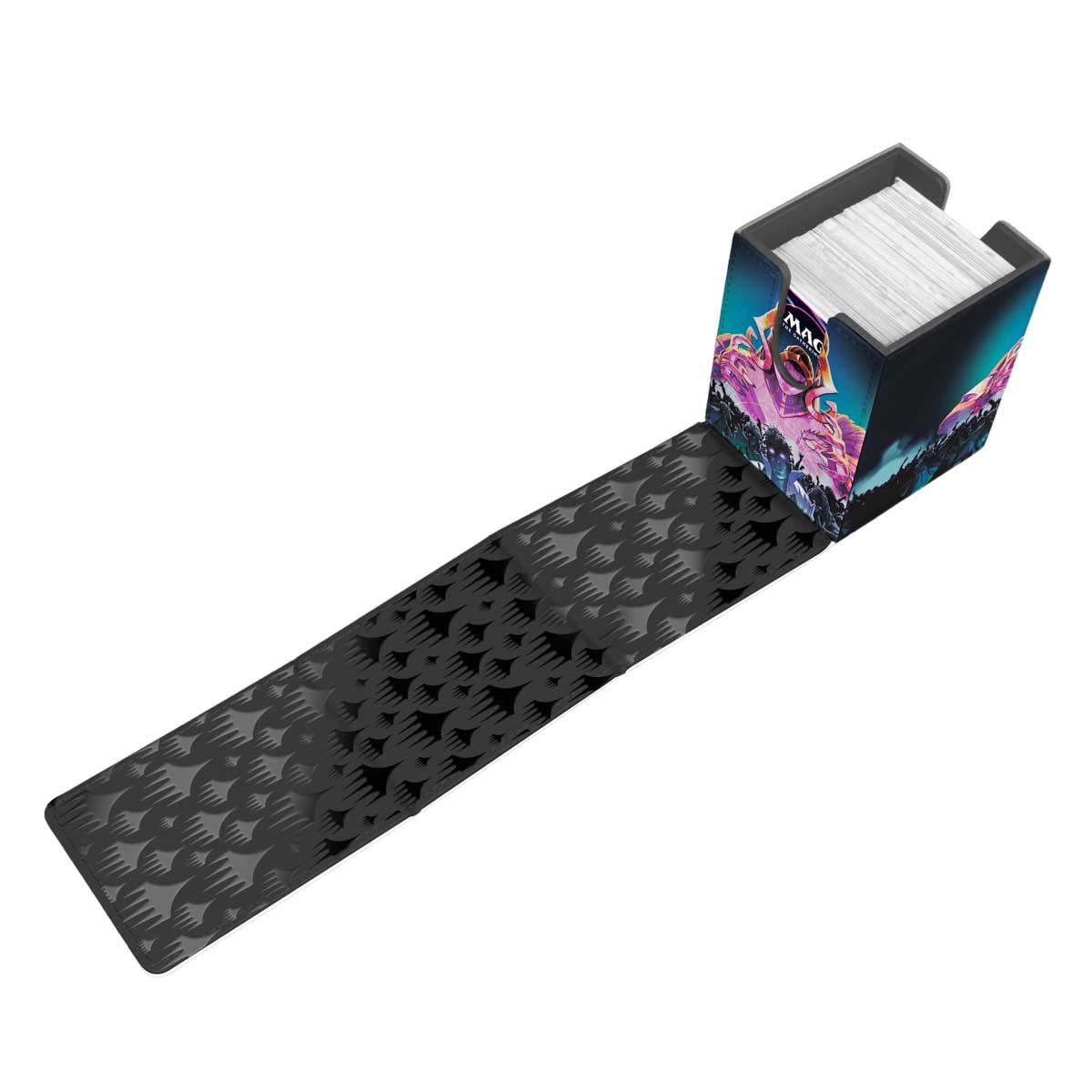 The Alcove Flip Deck Box ® for Magic: The Gathering features a vibrant, full-color leatherette finish, strong magnetic closure, and dual thumb notches for easy access to your deck. Store and protect up to 100 standard size trading cards double-sleeved in Ultra PRO Deck Protector® sleeves. Lid can be detached from either side of the box for easy access to your deck.