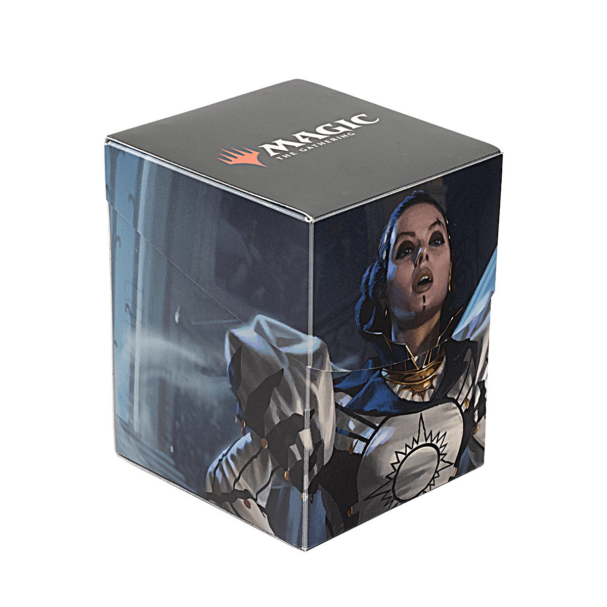 La boîte de 100+ cartes® boîte de rangement de cartes présente des illustrations vibrantes en couleurs de Magic : The Gathering et comprend un séparateur de paquets. Fabriqué en polypropylène rigide, sans PVC et sans danger pour les archives, vous pouvez ranger jusqu'à 100 cartes à double enveloppe en toute confiance. Le couvercle autobloquant permet de ranger vos cartes en toute sécurité lorsqu'elles ne sont pas utilisées, tout en offrant un accès facile. Taille pour les cartes à collectionner de taille standard.