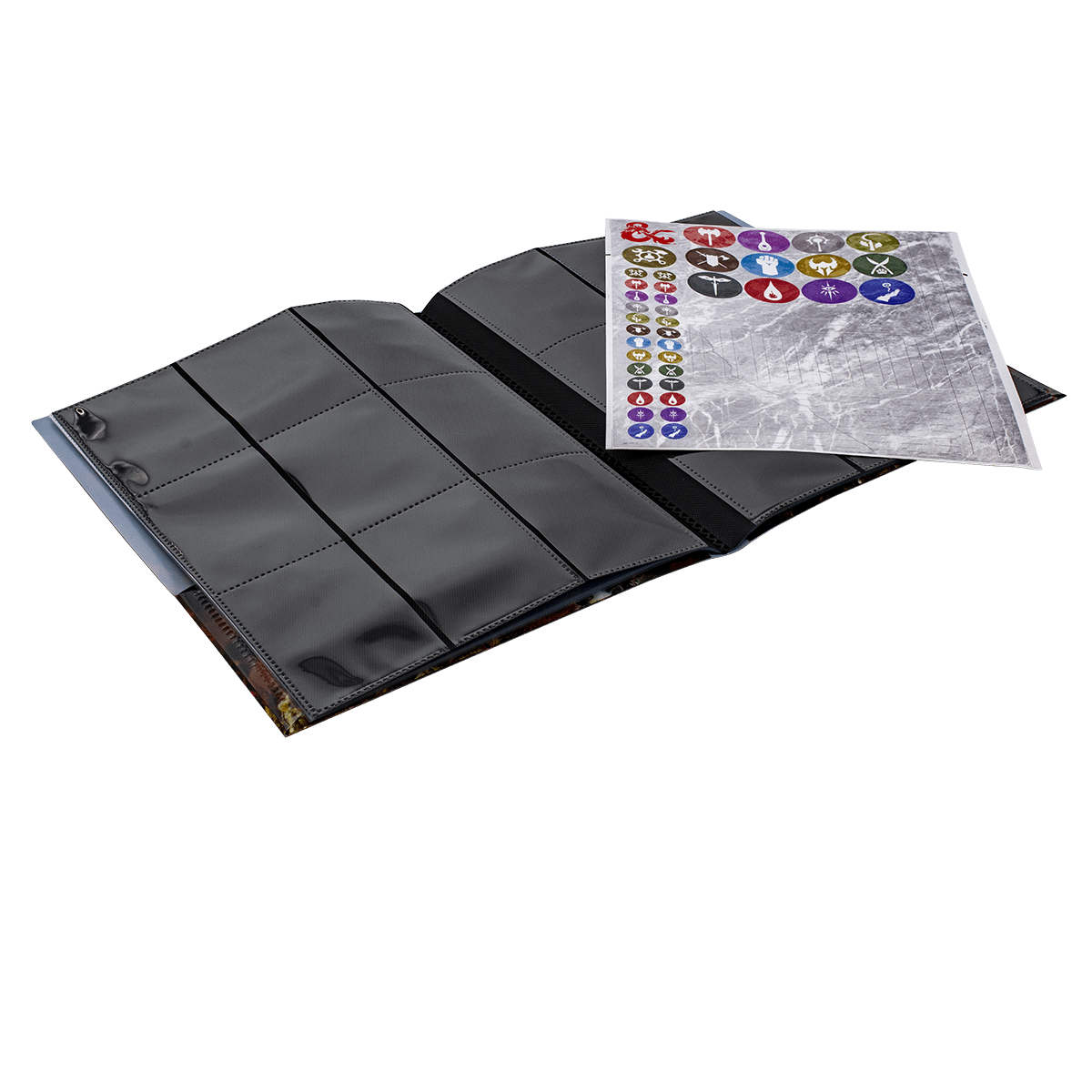- Include 10 pagine a tasca singola per le schede dei personaggi e gli appunti e due pagine a 9 tasche per le carte degli incantesimi di dimensioni standard.