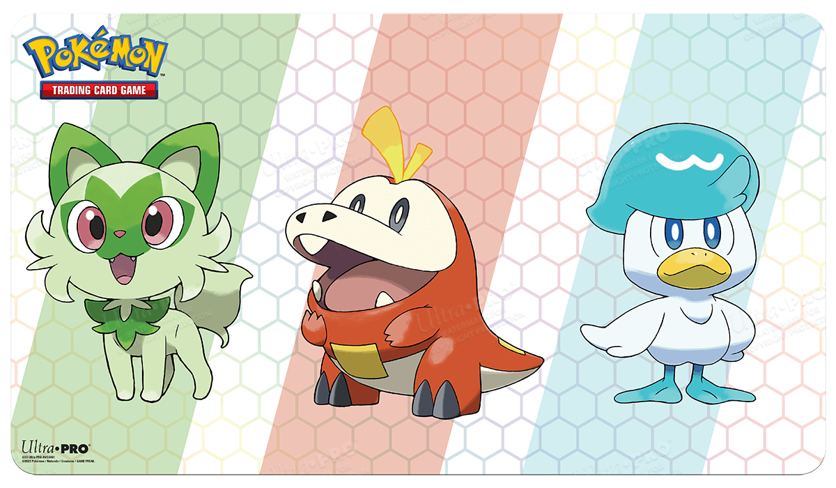 Questo bundle speciale include un playmat, 65 custodie Deck Protector® e un Deck Box® con un divisorio per il mazzo abbinato. Tutti gli accessori sono confezionati in una scatola per carte a tema, che può contenere fino a 500 carte con custodia. Gli accessori presentano i più popolari starter Pokémon Sprigatito, Fuecoco e Quaxly. Questo bundle natalizio è un regalo eccellente ed è un must per ogni allenatore o collezionista di Pokémon.