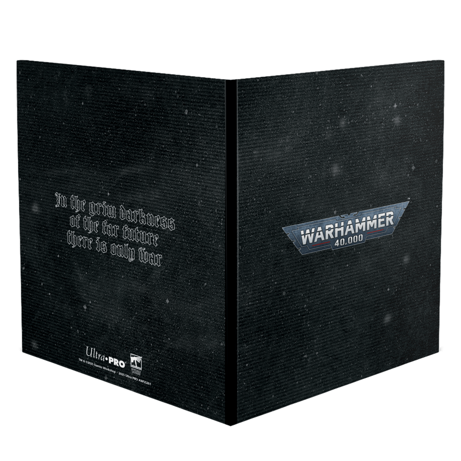 “In the grim darkness of the far future there is only war”, so prepare for battle with tabletop accessories for Warhammer 40,000! Organize and store your notes, index cards and datasheets in this Universal Datasheet Folio, featuring the iconic grimdark war quote on the back. Inside, you’ll find ten double-sided, 4-pocket pages, with pockets sized to hold 10th Edition Datasheets, plus two 1-pocket pages for storing notes and army printouts (A4 or 8.5in x 11in). Each black, embossed pocket page is made with acid-free, non PVC webbing to protect and frame your cards, and featured side-loading pockets for easy access. Use the included dry erase sticker sheet to customize and organize your armies!
