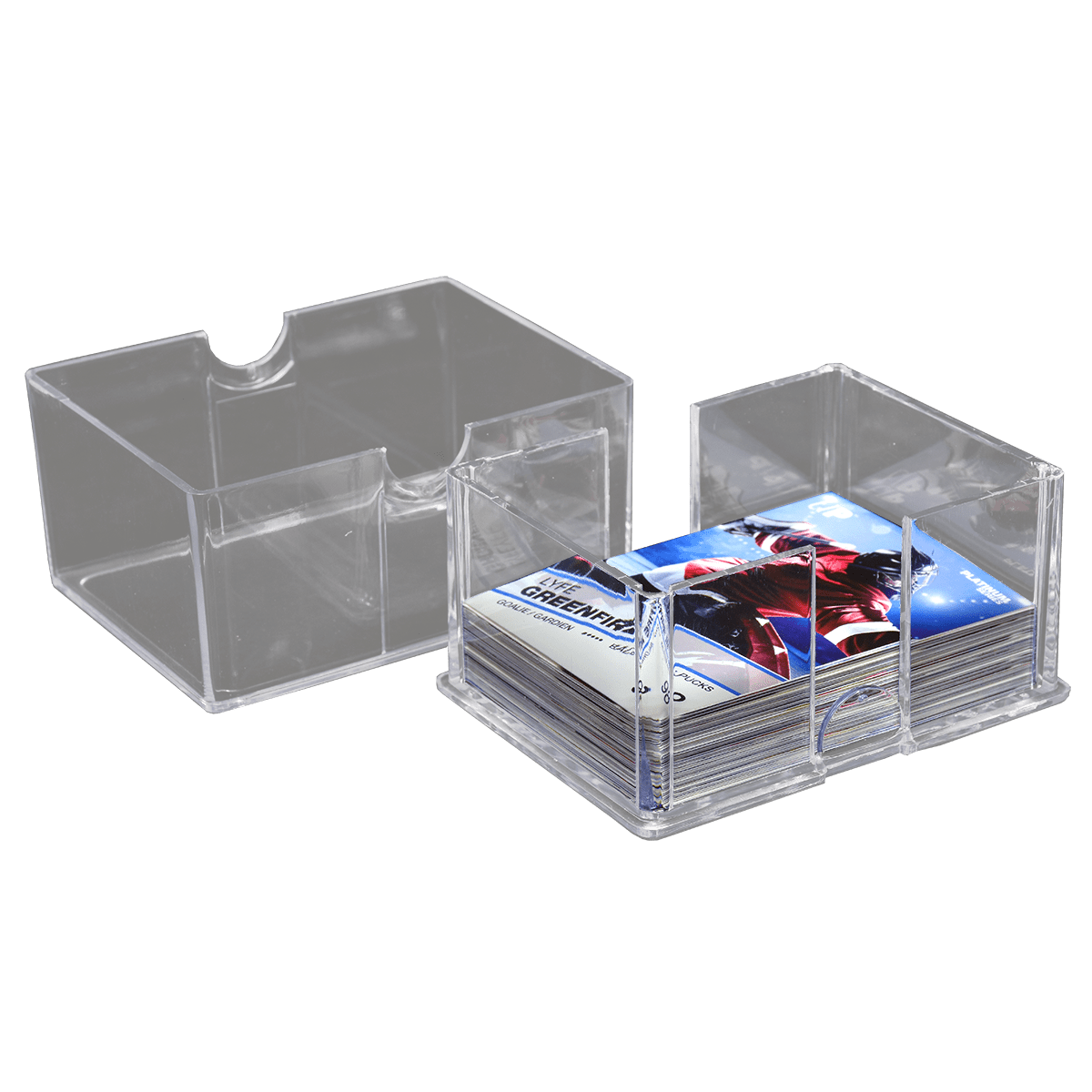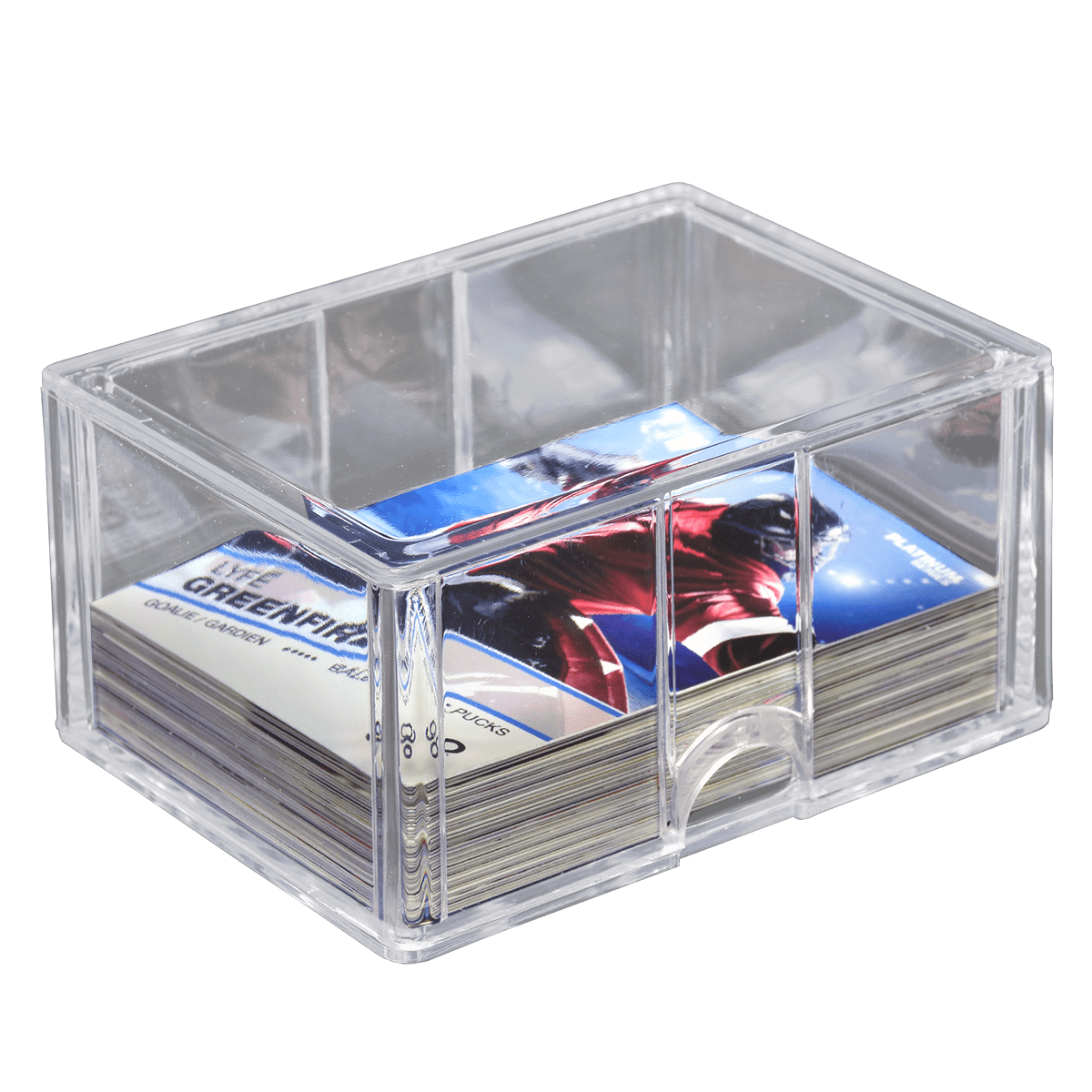 - Ultra-clear, highly durable plastic box for holding collectible trading cards measuring 2.5" x 3.5"