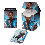 The 100+ Deck Box® card storage container features vibrant, full-color artwork from Magic: The Gathering and includes a deck divider. Made with archival-safe, non-PVC, rigid polypropylene materials, you can store up to 100 double-sleeved cards with confidence. The self-locking lid keeps your cards securely stored when not in use, while also offering easy access. Sized for standard-size trading cards.