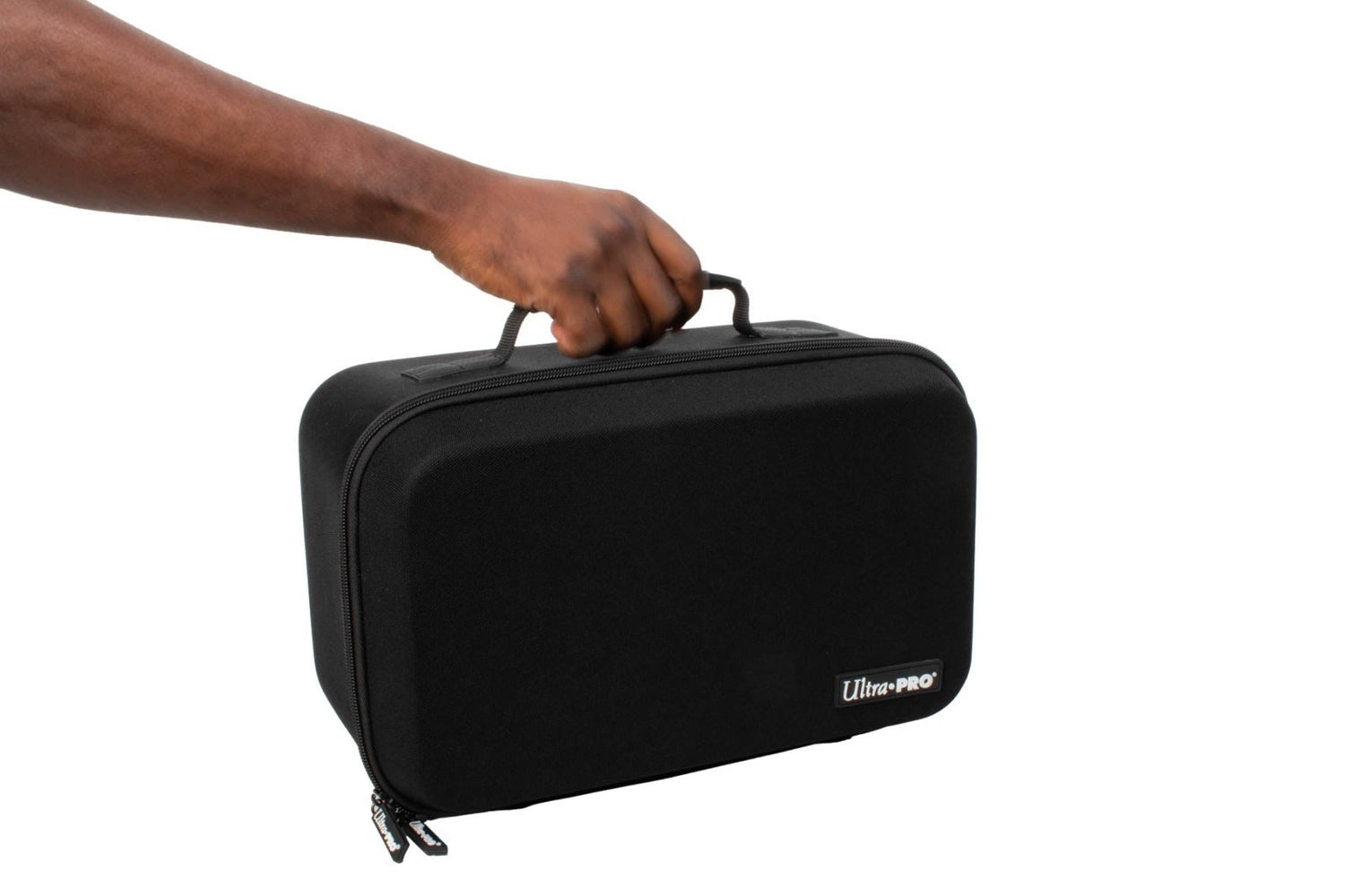 Introducing the Showcase Vault, the ultimate storage solution for collectors who demand both style and functionality. Crafted from a premium, heavy-duty fabric shell in sleek all-black material with striking red accents and a handle for easy carrying, this bag offers exceptional durability and sophisticated design.